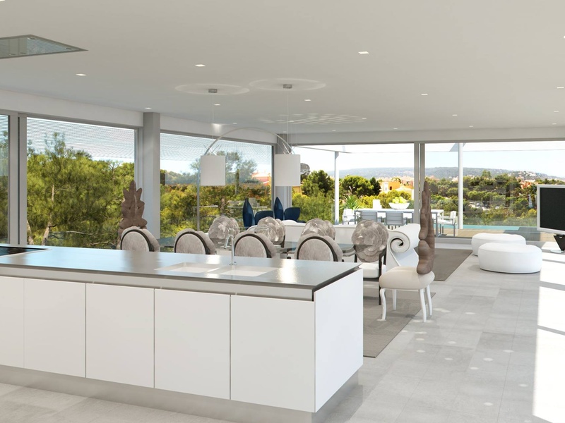 Подогрев пола, рамы на окнах из ценных пород древесины, алюминиевые автоматические жалюзи, солнечные батареи, дизайнерская мебель, деревянные покрытия на террасах и у бассейна, высокотехнологичные устройства, позволяющие контролировать интеллектуальные приборы с помощью iPad.