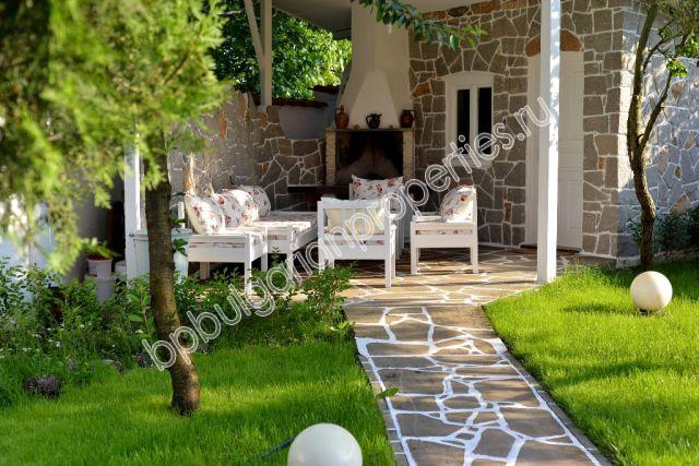 Ухоженный двор, с райграсом и множеством фруктовым деревьев /черешня, гранат, слива, инжир, оливка, декоративные кусты/.