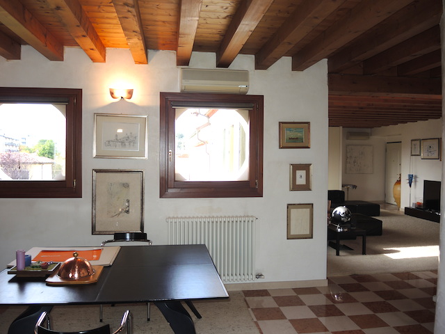 Furnished apartment in modern style located on the 2nd and top floor of a historic building dating back to the 1700. The property has an area of ​​400 square meters and is situated in an elegant area close to the center of Mestre and just 9 km from Venice. The property has two entrances and is divided into 2 levels. The living area composed by a large dining room with an open kitchen, a large living room that connects to an open space used as a studio room, 2 bathrooms with shower, one used as laundry. The sleeping area upstairs is composed of a hallway from which you have access to all bedrooms: 1 master bedroom with wardrobe, 2 double bedrooms and 1 single bedroom, wardrobes, 2 bathrooms with shower. The apartment is characterized by self-heating and cooling system, all rooms are equipped with air conditioning, interior finishes and architectural elements make the rooms unique. The apartment has 2 parking spots and 2 large garage in the basement. Sold partially furnished.