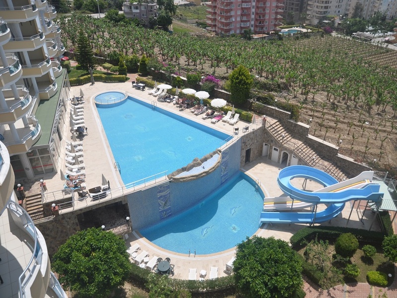На территории комплекса : крытый плавательный бассейн, 2 открытых бассейна с водными горками, детский бассейн, красивый и ухоженный сад, детская площадка, сауна, хамам, фитнес, теннисный корт, настольный теннис, бильярд, площадка для барбекю с беседкой, парковка, охрана 24 часа.