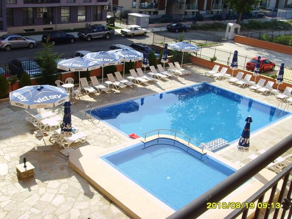 One bedroom fully furnished apartment for sale in the Bulgarian sea resort of Sunny Beach. It is situated at the 5th floor in the residential building, has with a new furniture and great views toward the pool and the resort.