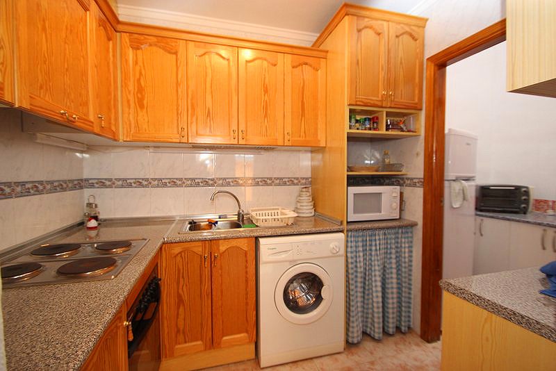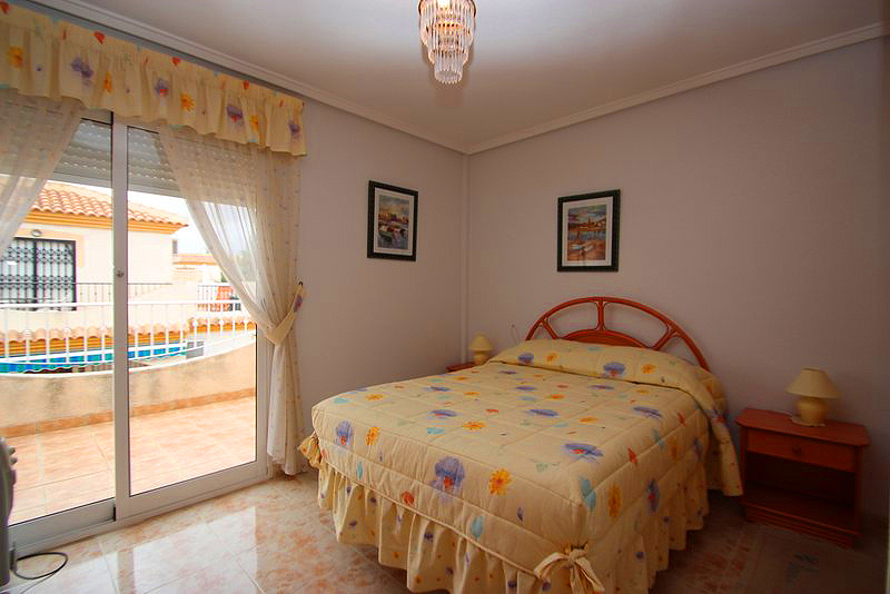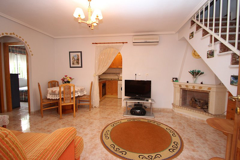 Бунгало расположено в урбанизации закрытого типа: во время отсутствия Вам не придется волноваться за безопасность дома. Первый этаж начинается с застекленной террасы, которая ведет в уютную гостиную с действующим камином. Есть отдельная кухня с небольшим подсобным помещением и спальная комната. Мраморная лестница ведет на второй этаж к хозяйской спальне с выходом на солнечную террасу.