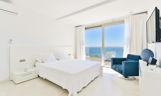 Hall. 3 double rooms with in-suite bathrooms. All with front sea view, A/C, king size bed, flat 42’ TV (Sony), iPhone/iPod dock (Sony) and safe. 42 m2 terrace.