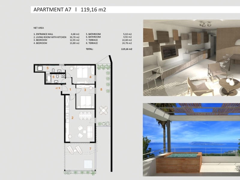 There are 19 apartments in the Villa, from 28 m2 to 120 m2 all luxury equiped. They are all designed in a contemporary style with particular attention paid to the quality and durability of the materials used. In order to maximise the breeathtaking view enjoyable from every part of the apatments, large openings have been provided to the south together with a large terracce.