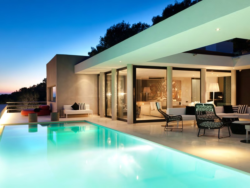 Amenities: Private infinity pool. WiFi internet. Plasma TV in each room, Sat, DVD player in every room, Sky TV & Apple TV, Sonos music system around the whole house and gardens with i-Pod or i-Phone connection in every room. Air Conditioning All rooms. Kitchen Ultra modern appliances, fully. The garden, mostly Mediterranean landscape, is typical to the island. This modern minimal design property features a large infinity swimming pool surrounded by an outdoor living area on different terraces suitable for ones privacy.