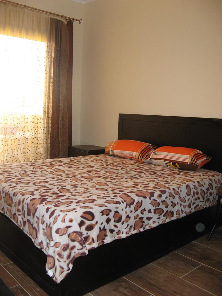 Полностью меблирована: двуспальная кровать, обеденный стол, шкаф, комод с зеркалом, кухня, кондиционер, телевизор с международными каналами, микроволновая печь, большой холодильник, стиральная машина.