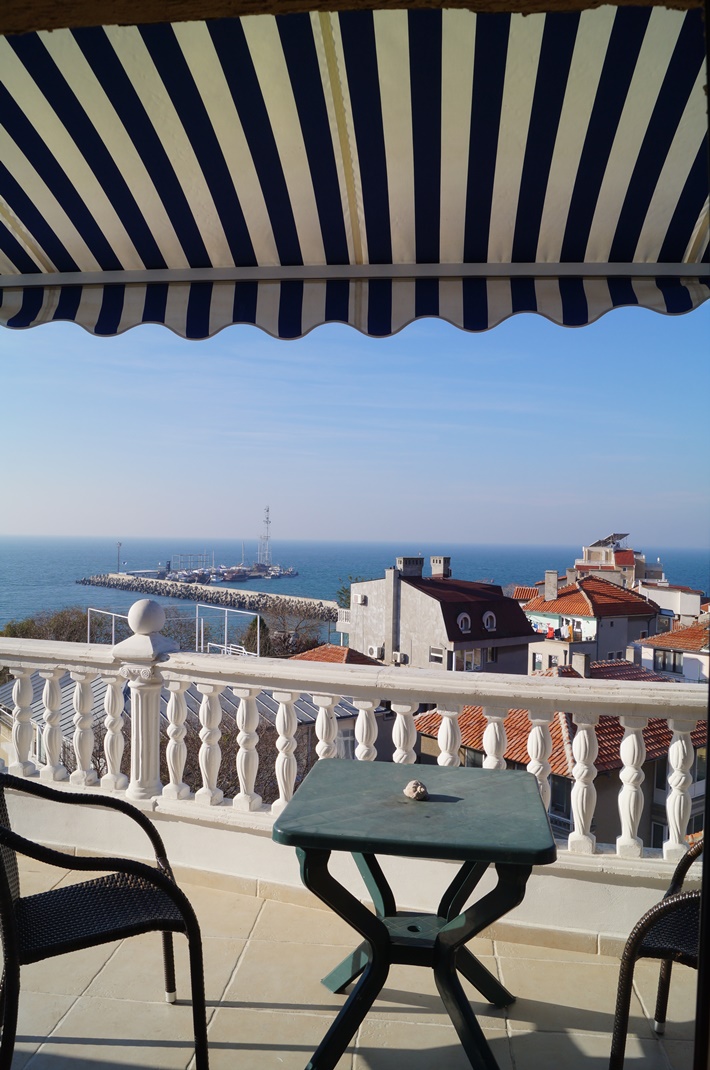 Two bedroom apartment is located in the town of Pomorie on the second sea line - only 100 m from the sea. The duplex apartment has a wonderful panoramic sea view! The apartment is located on the 4 and 5 floors and consists of: First level - living room with kitchenette, terrace with sea panorama Second level - two bedrooms, bathroom, storage room and big terrace The apartment comes fully furnished.