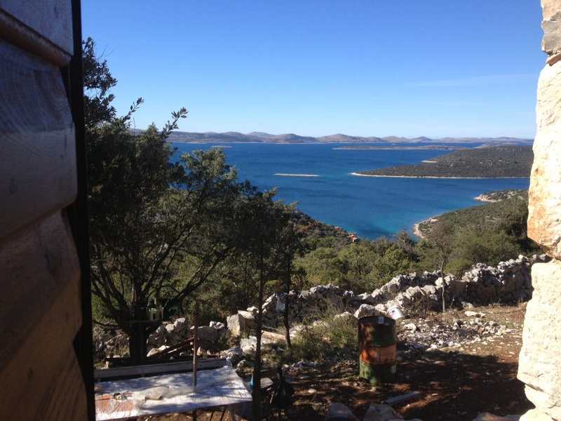 On the island of Pasman we sell a plot of 12,500 m2 with a small stone house in the construction process.