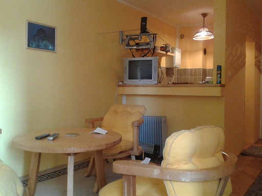 The apartment is located in a quiet area, isolated from the city noise. Distance from the sea 600 m. The apartment consists from living room, kitchen, bedroom and balcony.