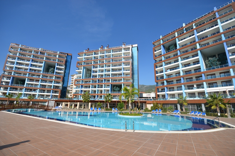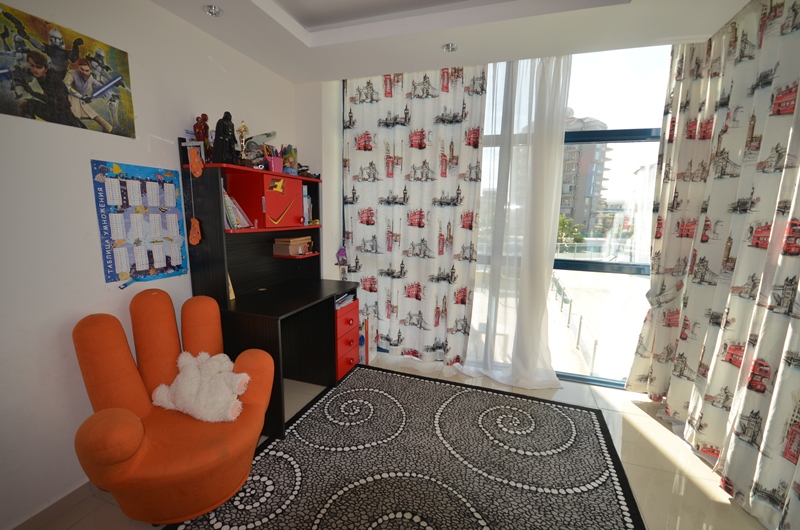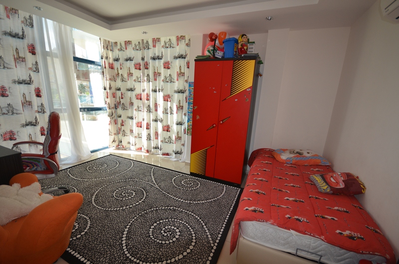 Квартира 3+1, на первом высоком этаже в блоке С, имеет огромную террасу в 20 кв.м. с южной стороны квартиры с видом на бассейн и внутреннюю территорию комплекса, и просторный балкон с выходом из спальни с северной стороны. В квартире собственником был сделан подогрев полов по всей квартире, установлены кондиционеры в каждой комнате, бытовая техника. В квартире 2 ванные комнаты в одной, в одной из которых установлено джакузи. Возможно покупка квартиры вместе с мебелью. На территории комплекса круглосуточная охрана, офис управляющего, салон красоты, фитнес и спа центры, зимний обогреваемый бассейн, 2 открытых огромных бассейна, детский бассейн, аквапарк, открытая и закрытая парковки, боулинг, ресторан, кафе, детская комната и детская игровая площадка, зона Play station, большой теннис и баскетбольная площадка, настольный теннис и бильярд, конференц зал и кинотеатр. Ежемесячное обслуживание квартиры 45 евро. В пешей доспупности находятся крупные торговые центры: Аланиум, Метро, Кипа и др. Расстояние до моря 600 метров.