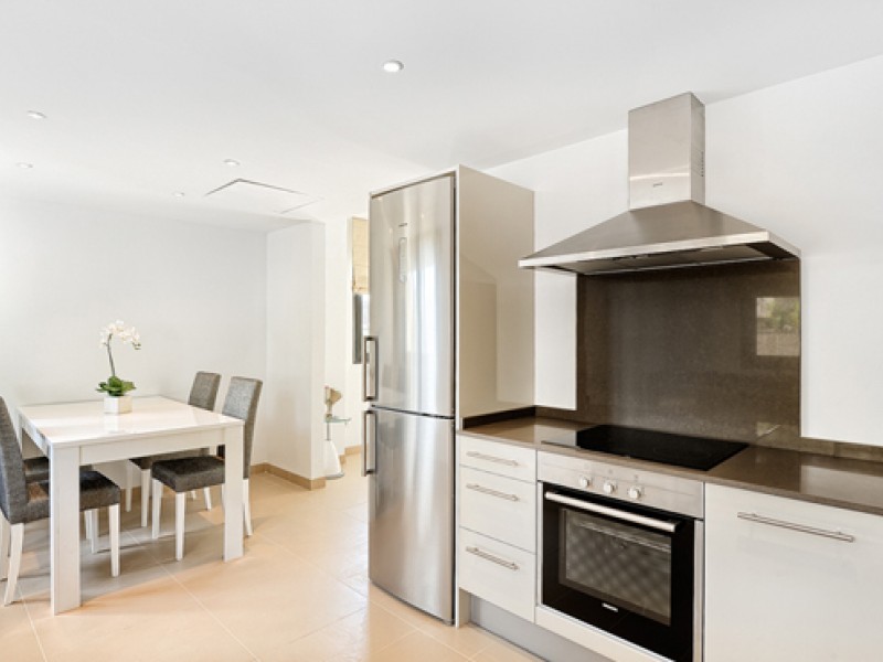 Комплекс состоит из апартаментов с 2, 3 и 4 спальнями. Площадь данного апартамента составляет 85m2. Апартамент имеет две спальни с встроенными шкафами-купе, две ванных комнаты, современную кухню, гостиную-столовую с камином и выходом на балкон. Недвижимость выставлена на продажу с парковочным местом в гараже и кладовой. Кондиционер холод/тепло.