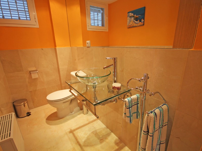 Вилла площадью 240 м2 включает в себя пять спален, три ванные, отдельную полностью оборудованную кухню, холл с обеденной зоной, подсобное помещение и большую террасу. На полу лежит мраморная плитка, которая привносит в дом частицу живой природы, освежает обстановку и задает определенное настроение. Благодаря панорамным окнам в гостиной в дом попадет много солнечного света.