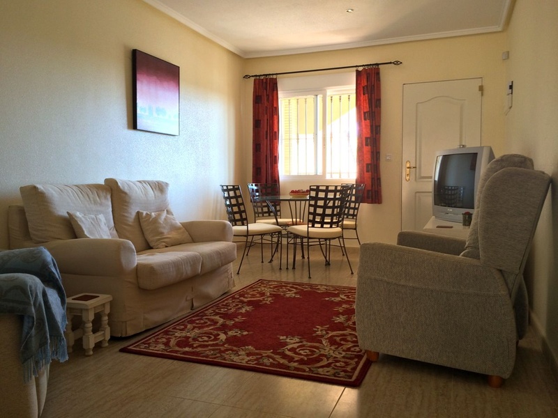 This Bungalow is located in Brisas y Gold II, Villamartin, Oriuela Costa. It features 2 bedrooms, a bathroom and a living room with open kitchen. From the living room you have access to a good Eastern side of the balcony.