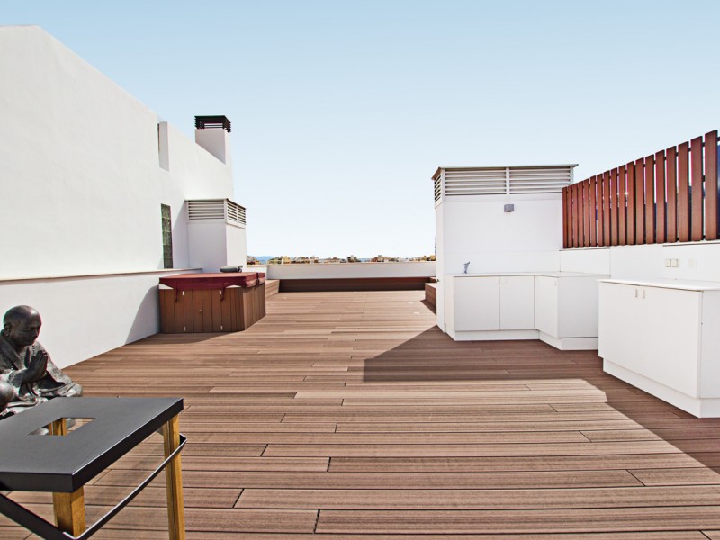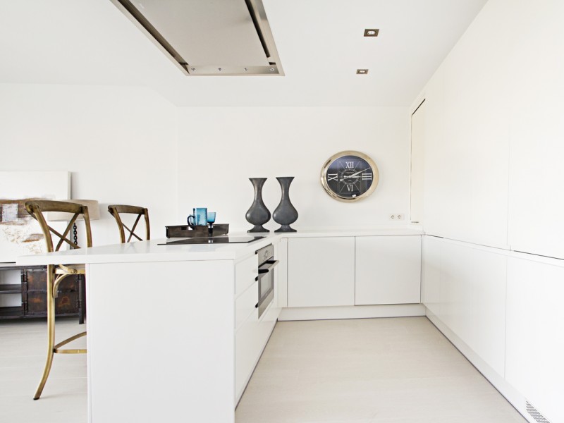 Жилая площадь квартиры составляет 137 м2, площадь террасы 28 м2. Отделка интерьеров выполнена из высококлассных материалов. Сантехника, кухонное оборудование и керамика от эксклюзивных марок. Квартира имеет три спальни, оборудованные встроенными шкафами, гардеробную, две ванных комнаты, кухню «остров», интегрированную в гостиную-столовую.