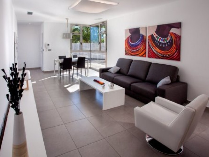 Эти дома имеют личный сад с огороженным участком, автоматическую дверь для входа на участок, большую столовую-гостиную с окнами в пол, меблированную кухню и прачечную, основную спальню с ванной комнатой и гардеробной, ещё 2 спальни со встроенными шкафами и одну ванную комнату. Из сада можно подняться на большой солярий с видом на море.