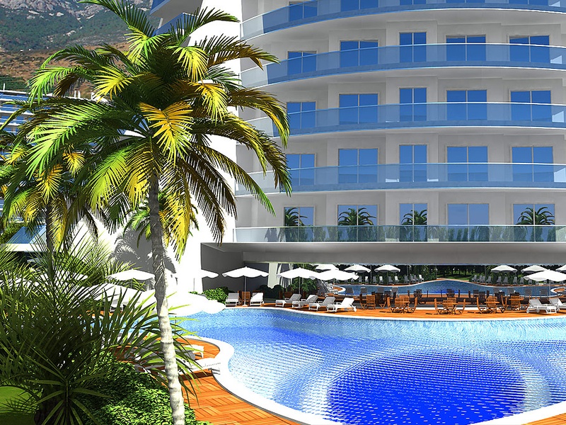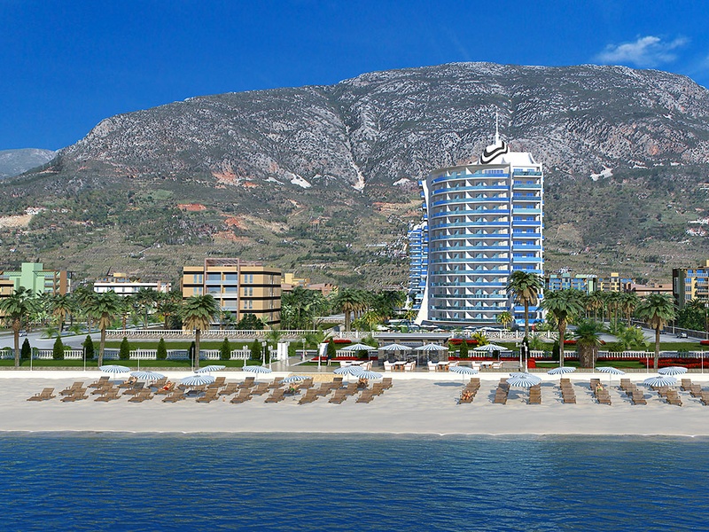 Это современный комплекс который находиться в пригороде Алании Махмутлар. Это двенадцати этажный дом, где открывается красивый вид на горы и лазурное море.