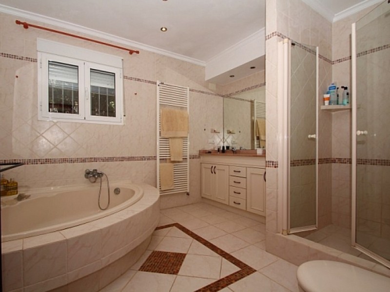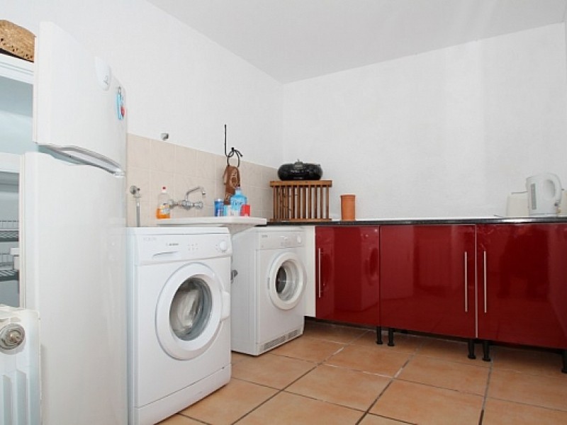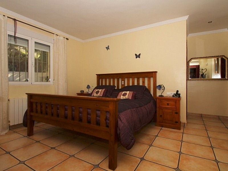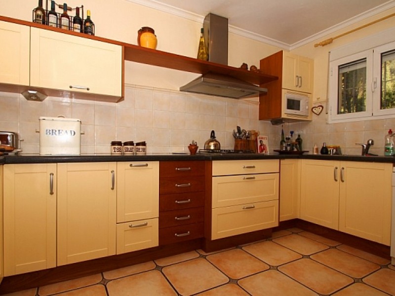 Элегантные интерьеры наполнены средиземноморским колоритом. Особый шарм внутренним пространствам придают оригинальные элементы декора из дерева и старинная керамика. Дом имеет четыре спальни, три ванных комнаты (одна в спальне), просторную гостиную-столовую с камином, меблированную кухню и прачечную.