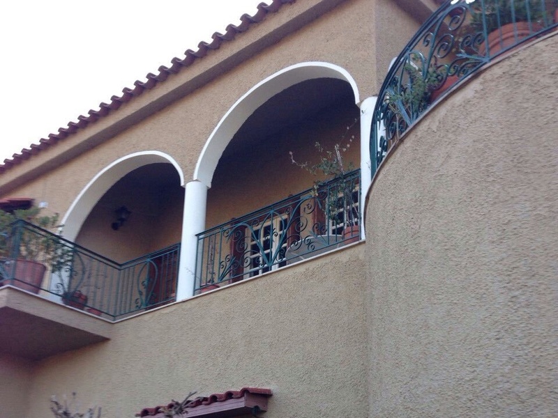2 этажа: первый этаж как гараж и на втором гостиная, 2 спальни, 1 ванная, кухня и 2 балкона