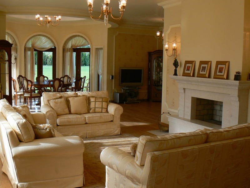 В средней части фойе расположен просторный салон с камином, состоящий из   трапезной с большим обеденным столом и зоной отдыха.