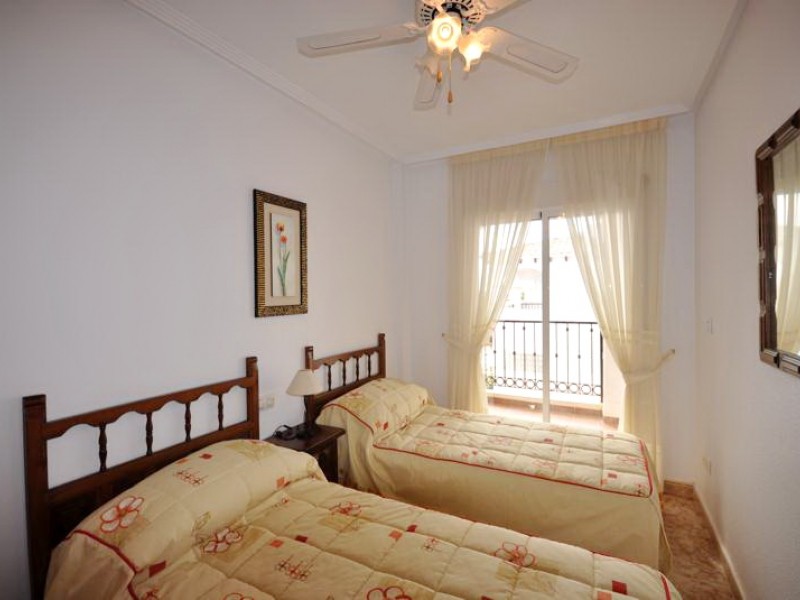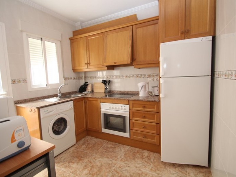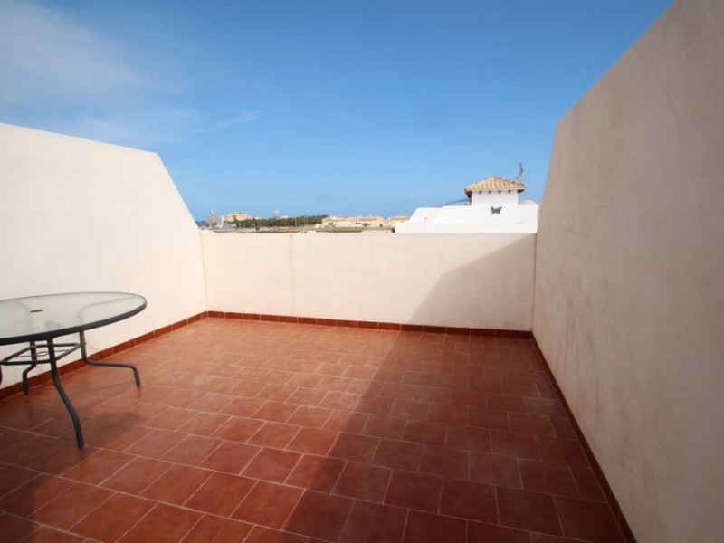 На продажу выставлен отличный вариант — дуплекс на Коста Бланка в тихой зеленой урбанизации «Ciñuelica». На первом этаже расположен холл, полностью оборудованная техникой и мебелью кухня, ванная комната. На втором этаже две спальные комнаты и санузел, а также есть выход на небольшой солнечный соляриум.