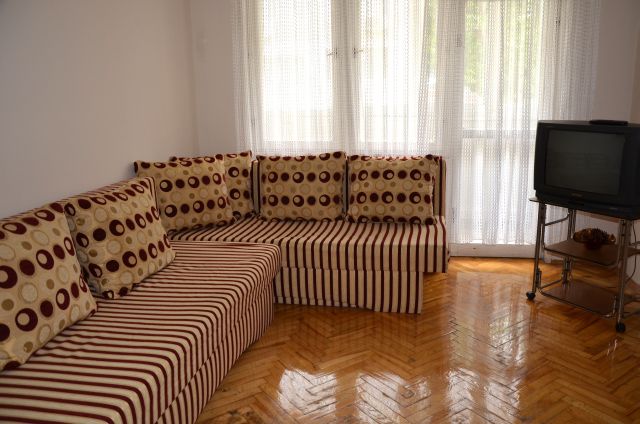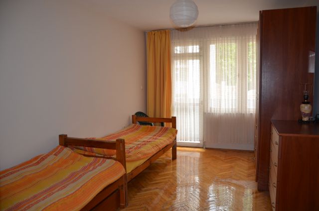 Предлагаем посуточно в аренду двухкомнатную квартиру в 15 минутах ходьбы от центра Варны, городского парка , пляжа. Квартира находится в месте с отлично налаженной инфраструктурой , в непосредственной близости от большого супермаркета , который работает 24 часа в сутки , автобусной остановки. Квартира располагает двумя отдельными комнатами и кухней. Распределение комнат –холл с 2 раскладными диванами, стол с двумя стульями, телевизор с кабельными программами , интернет; спальня с двуспальной кроватью, односпальная кровать , гардероб и комод. ; кухня- посуда , холодильник, стиральная машина , кухонная плита ; ванная комната с душ- кабиной, ванной; балкон. Может проживать 6 человек.