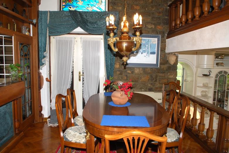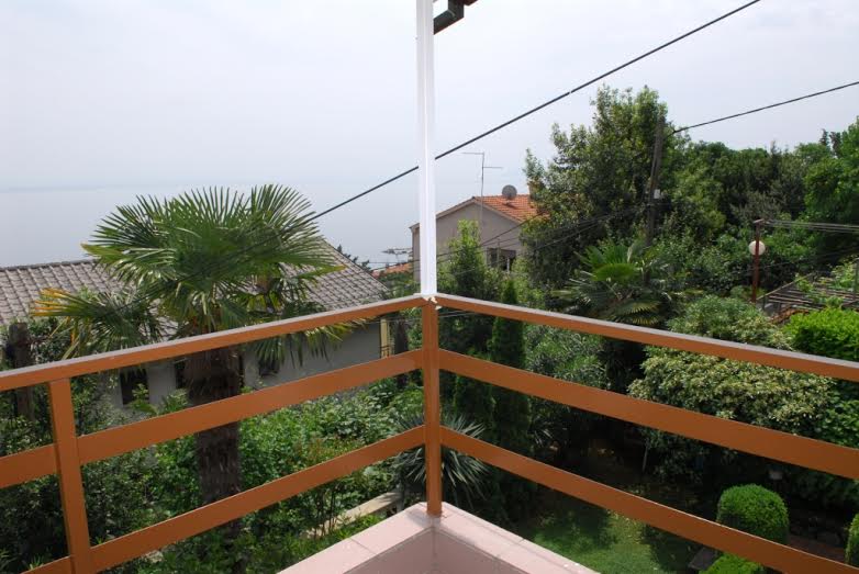 На первом этаже расположены корридор, кухня, гостинная с камином и центральным отоплением плюс комната площадью 42 - 48 квадратных метров. Во дворе находится камин-грилью На втором этаже расположены 3 спальных комнаты, ванная комната и туалет. В доме есть террасы с которых открывается прекрасный вид на Кварнер. Ухоженный двор площадью 620 квадратных метров. Отдельно расположенная квартира-студия для прислуги площадью 30 квадратных метров. Открытый гараж для двух автомобилей. Мебель выполнена итальянскими мастерами на заказ.
