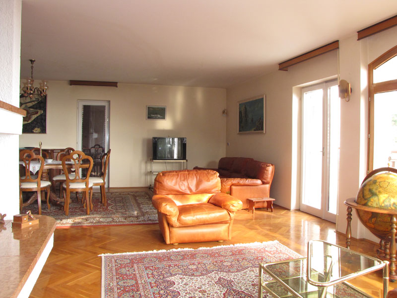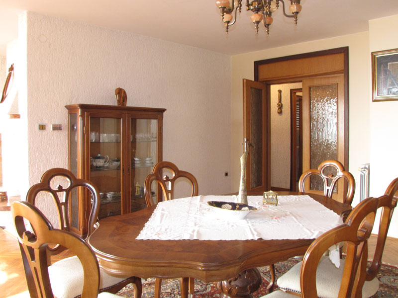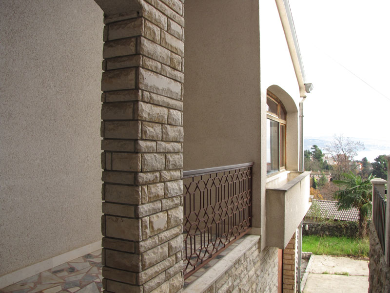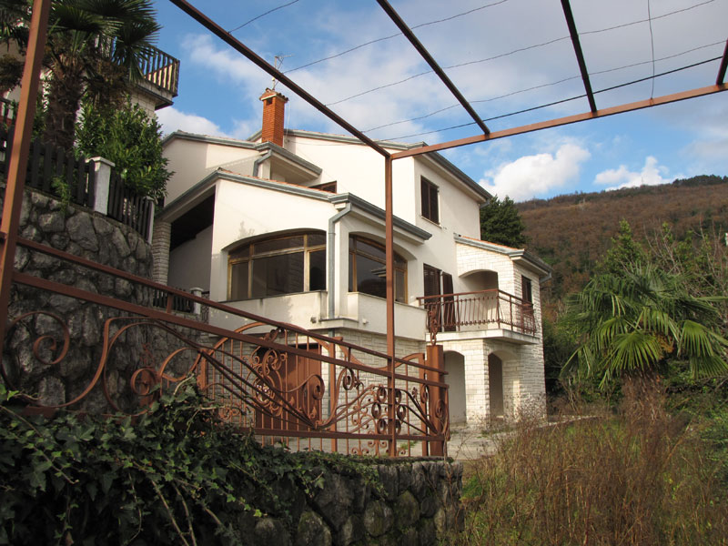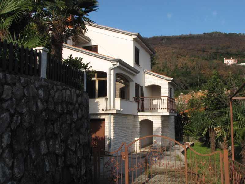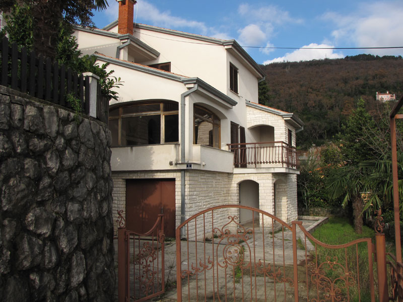 Дом в Опатии, жилая площадь 230 квадратных метров, общая площадь 310 квадратных метров, 800 метров от моря. На цокольном этаже находятся котельная и гараж из которого по внутренним ступенькам можно зайти в дом. На первом этаже расположены коридор, кухня, большая гостинная с камином и видом на Кварнер, туалет и ванная комнта, балкон с видом на море. На втором этаже расположены ванная, туалет, 4 спальни и лоджия с видом на морею Двор площадью 450 квадратных метров.