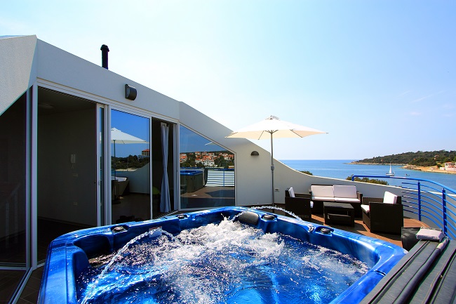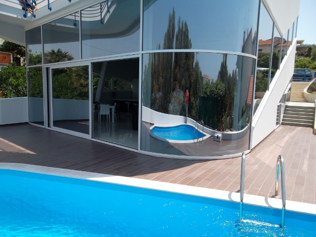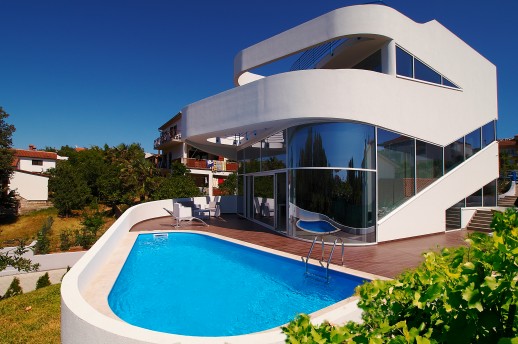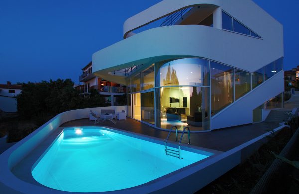 Уникальная вилла в Пуле, не упустите возможность! Абсолютно новая современная хай-тек вилла площадью 500 квадратных метров расположена непосредственно на побережье Адриатического моря. Площадь участка 550 квадратных метров. Каждый этаж виллы располагает открытой оригинальной террасой. Огромные стеклянные поверхности являются необычным архитектурным решением, стекла тонированы, поэтому находится в гостинной виллы комфотрно и приятно. Окна открываются и закрываются нажатием на кнопку. На первом этаже расположены великолепная гостинная, две спальни, ванная комната с душем-кабинкой с гидромассажем и паровой купелью. Кроме лестницы на второй этаж можно попасть и лифтом. На втором этаже расположены две спальни у каждой из которых своя ванная комната. В одной из ванных находится необыкновенная ванна в форме женской туфли на каблуке из которой льется небольшой водопад. Также в ванной комнате расположена и гидромассажная душ-кабина с паровой купелью. На этом этаже находится просторная гардеробная, которая объединяет спальни между собой. На третьем этаже расположены 2 спальни и ванная комната. В вилле есть гараж на 2 автомобиля, также еще 2 автомобиля можно без проблем припарковать на участке. Вилла привлекательна не только своим великолепием и оригинальностью, но так же и своей позицией. Кроме того что выйдя из виллы вы сразу попадаете на уютный и чистый пляж, отсюда также легко попасть в центр богатой культурой и историей античной Пулы и туристичекой местечко Верудела.