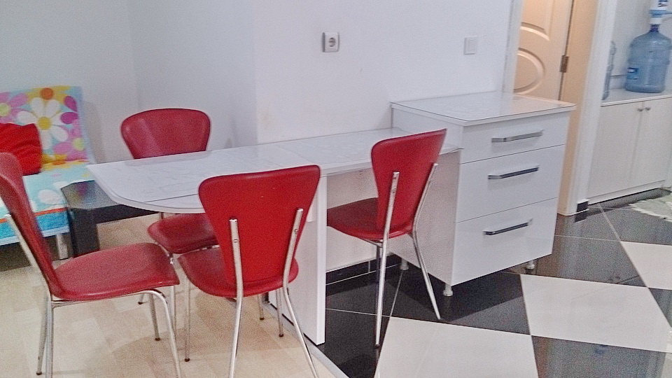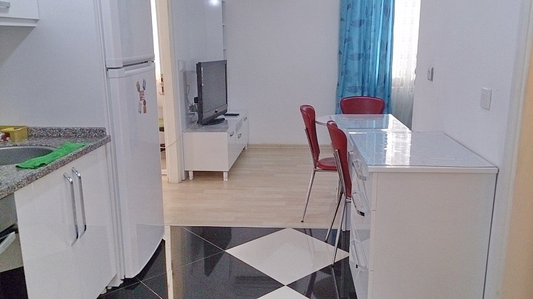 В квартире кухня совмещена с салоном, установлен кухонный гарнитур, газовая и духовая печь, вытяжка, мягкая мебель, обеденный стол, телевизор, во всех комнатах кондиционеры, в комнатах спальные гарнитуры, в ванной душ кабина, бойлер для нагрева воды, на окнах роль ставни и решетки, внешние стены выложены специальным камнем. Квартира сухая и теплая. Аренда может приносит доход от аренду в сезон до 1000 долл, в зимний период 800 лир.