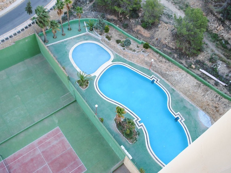 1 bedroom, living room , fully equipped kitchen , a spacious terrace (suitable as a second bathroom ) , garage . 86m2 . Built-in wardrobe . Satellite TV . Swimming pool , tennis , mini football, paddle tennis , playground , greened area . At 10 minutes from the beach . Mortgages up to 70% .