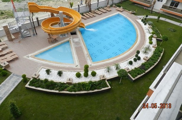 Diamond Beach Residence - a new complex in quite place in Avsallar, popular resedential area of Alanya famous with its golden sand and amazing beaches, is only 200m to the sea and 500m to the center of Avsallar, local bazar, shops and restaurants. The compleex inncludes 3 blocks, 68 apartnmets in total. Commplrex has a lot to offer - outdoor pool with a slider, indoor pool, sauna, fitness, kids' playground