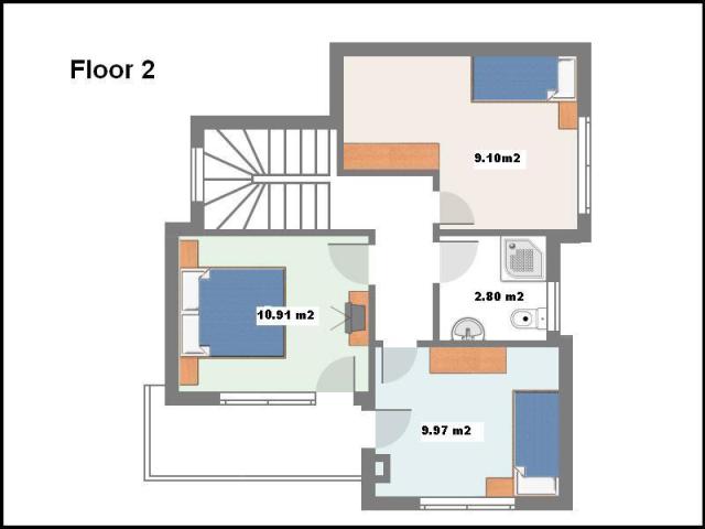 Второй этаж – 3 спальни, ванная, большая веранда