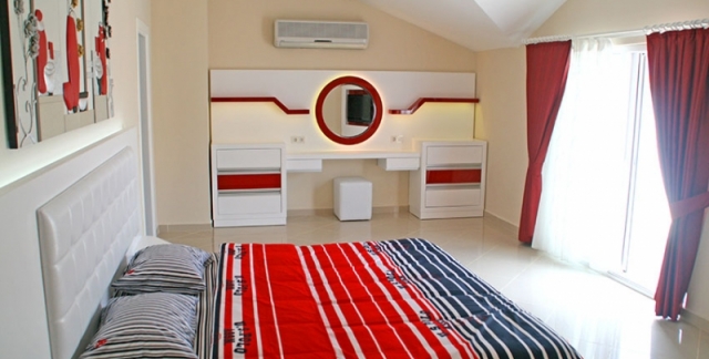 Spacious villa set among Mediterranean vegetation. Antalya Airport is only 25 km away. The center of Antalya, 30 km away. Distance to the sea is only 1500 meters. There is a possibility of diving, water sports and rafting. Near Riding School.