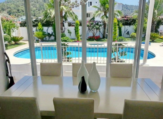 The villa is situated in the heart of the Mediterranean in the tourist town of Kemer near Antalya. Very nice and green town located between the majestic mountains covered Tarusskaya coniferous forests and the azure Mediterranean Sea. A large variety of shopping, entertainment, cafes, a large park on the shores of the beaches, estuary boat all is within walking distance of the villa.