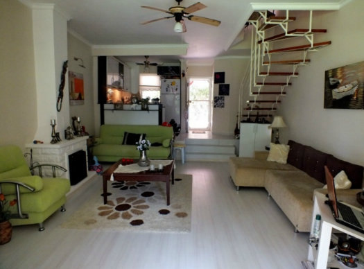 Ground floor: kitchen vitroceramic installed appliances, refrigerator, dishwasher, washing machine, microwave, interior furniture, a TV, fireplace, staircase to the second floor is made of wood.