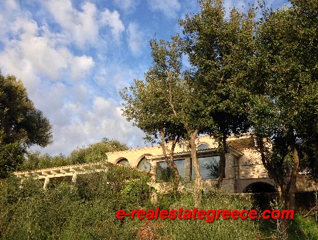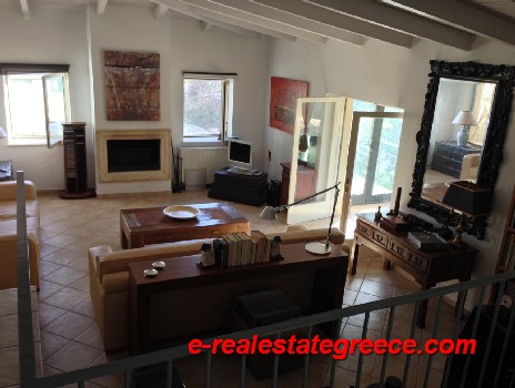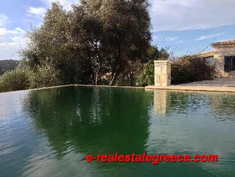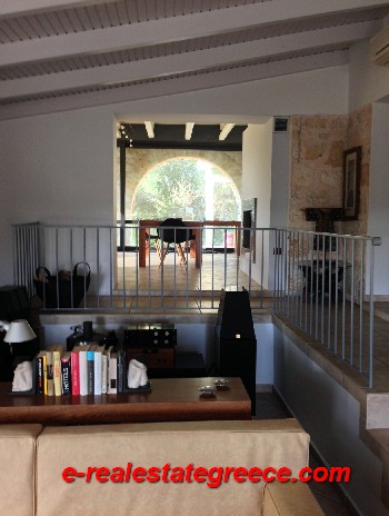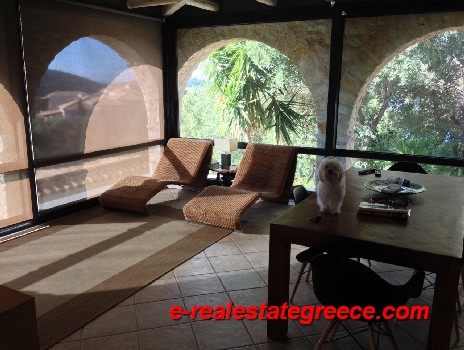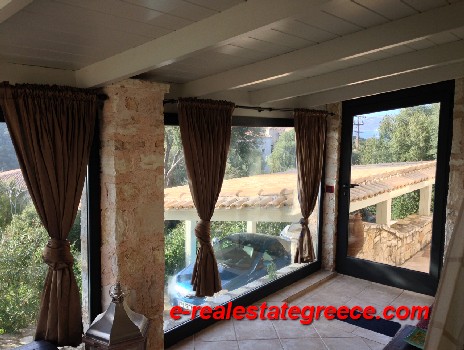 Stone house for sale. It is ​​278 sq.m. It consists of three bedrooms, living room, kitchen and two bathrooms. It is fully furnished in a minimal aesthetic. It offers unobstructed view to the sea, 2 parking spaces, 60 sq.m. pool, basement, air conditioning, central heating and garden. The house has mark of EOT and can be rent with high income. It is located within 4000 sq.m.  of land, in Sivota of Thesprotia, Greece.