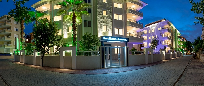 Luxury four-storey complex flaunts 300 meters from the sandy beach on the Mediterranean coast. Nearby there are convenience stores, bakeries, restaurants, health centers, pharmacies, playgrounds and bus stops.