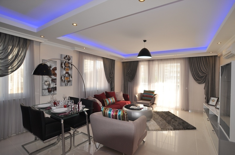 There is good public transport links, there are schools, kindergartens, health institutions, beauty salons and even a Russian cultural center. Here live mainly come from Russia, Kazakhstan, Ukraine and a number of European countries. In summer the temperature here ranges between + 25 ... + 28 ° C, and winter does not fall below + 10 ° C. With balconies overlooking the emerald expanse of the Mediterranean and the bursting green Taurus mountain range.