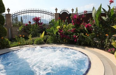 The territory has 650 m2, 55 meters pool with Jacuzzi, a cascade of color lights, in front of the house of the three tiered fountain made of natural stone, garden (palm trees, fruit trees, a variety of colors) with auto irrigation, own well. Automatic gates handmade. The courtyard is paved with natural stone. The fence is decorated with natural stone, marble. Barbecue.