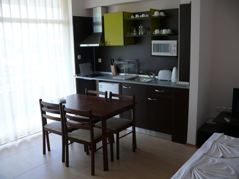 Большая студия в одном из лучших комплексов Солнечного берега. Этаж – 3 (лифт работает круглый год). Площадь – 47 кв.м. Планировка: прихожая, сан.узел, большая комната, совмещенная с кухней, балкон. Квартира очень просторная и светлая. Мебель и техника входят в цену. В комплексе два больших бассейна – для детей и взрослых, ресторан, теннисный корт, большая детская площадка, ресепшн, игровая комната. В 20 м от комплекса круглогодичный супермаркет Младость.