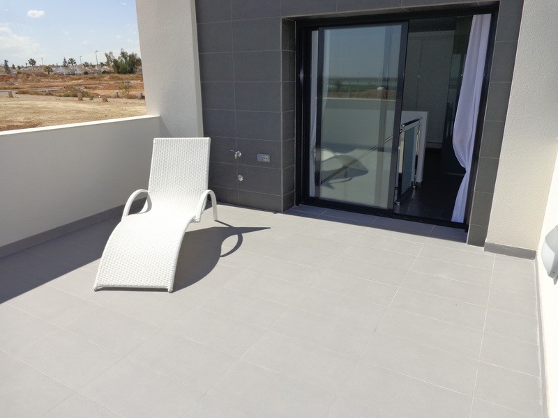 Внутренние ступеньки ведут к двум двухместным спальням со встроенными шкафами, одной ванной комнате и, наконец, террасе-солярию площадью 18 м2, откуда открывается прекрасный вид на природный парк Салинас де Ла Мата и озеро.