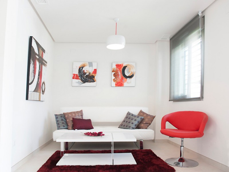 Частные владения располагают отдельным садом и двумя террасами. Лужайка покрыта искусственной травой. На первом этаже расположены две спальни, ванная, гостиная и кухня. На втором этаже находится просторная спальня и ванная комната. Резиденция расположена в 700 метрах от великолепных пляжей Торревьехи; вся необходимая инфраструктура находится в пешей доступности.