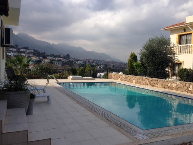 This superb 4 bedroom spacious villa has been immaculately designed & part furnished offering all luxuries you could possibly imagine. Located only 5 minutes drive east of Kyrenia, boasting magnificent sea & mountain views, beautiful landscaped gardens & it’s large private pool. TITLE DEEDS READY / VAT PAID Main features: • 4 Bedroom spacious villa • Master bedroom with en-suite • Spacious lounge & dining room • Luxury fitted open plan kitchen • Extensive terracing • 1000m2 plot size • Double glazing windows • Landscaped gardens & garden shed • 5m x 10m Overflow swimming pool • Uninterrupted sea and mountain views • Paved driveway with iron gates • 225m² Coverage area,