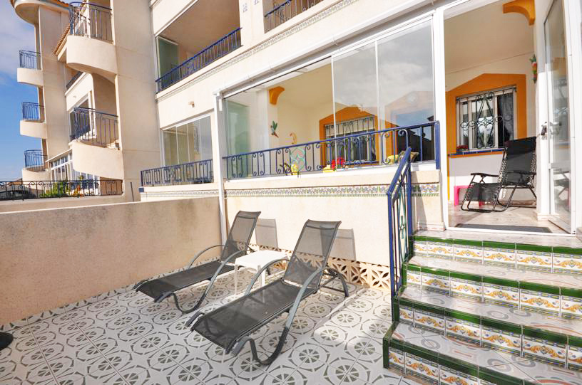 В квартире 2 спальни, 1 ванная комната, гостиная, кухня, большое подсобное помещение, красивая застекленная терраса и патио 29 кв м. В урбанизации для вашего удобства расположены большой бассейн, парковка и парк.