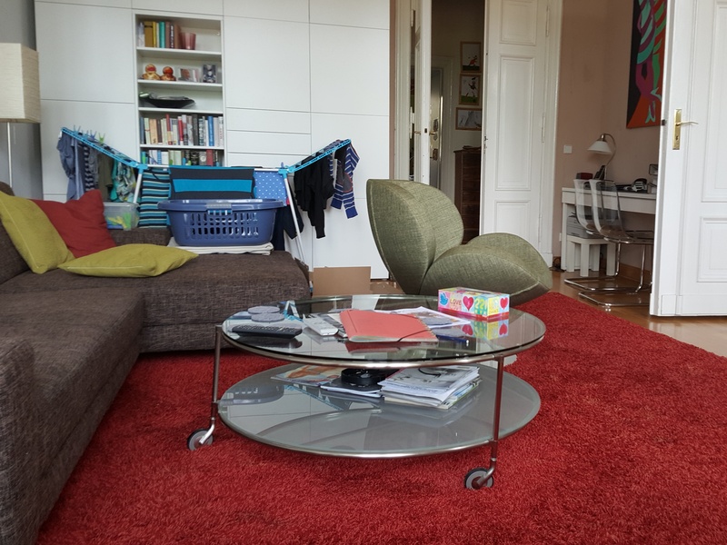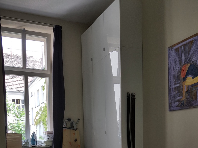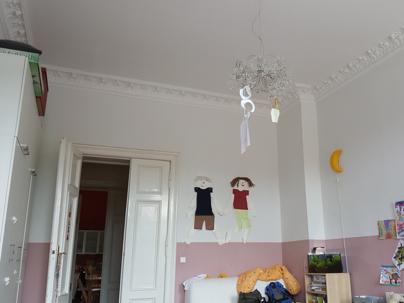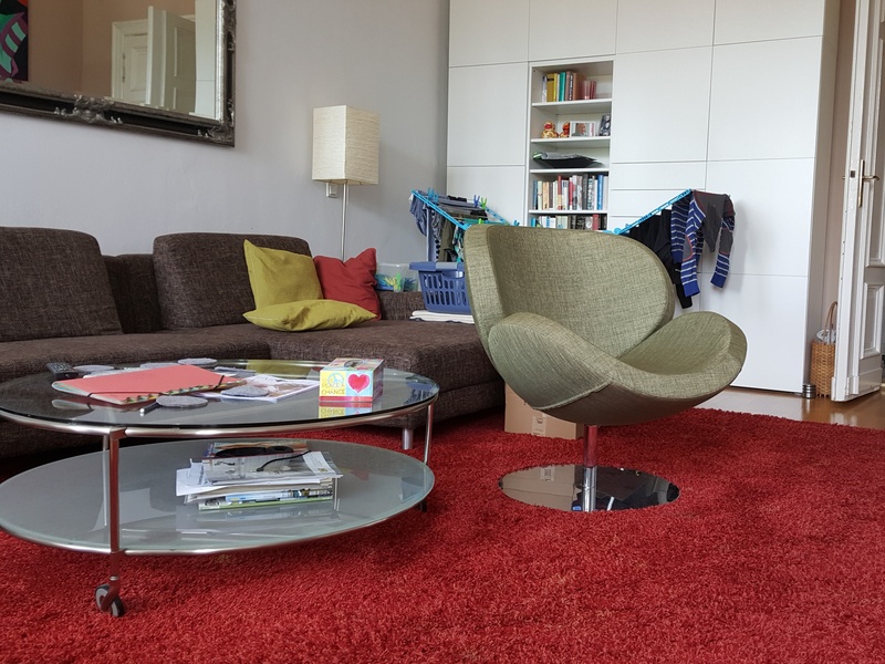 Человек входит в квартиру через просторный холл, из которого есть доступ к 3 комнатам и кухне/столовой комнате. В четвертую комнату можно попасть через небольшой коридор, ведущий из кухни. Квартира имеет балкон, две ванные комнаты с окнами(душ с туалетом и ванная с туалетом) и две кладовки. Весь пол покрыт высококачественным паркетом. Лепнина на 3,40м высоком потолке придает квартире дополнительный шарм благородного поместья. С балкона на западной стороне открывается панорамный вид на противоположное кладбище, телебашню и Красную Ратушу. Трамвайная остановка находится прямо перед дверью.
