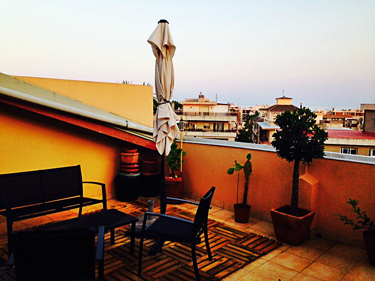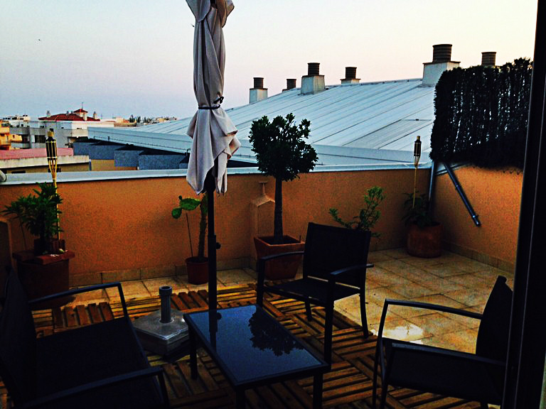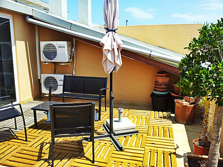 Attic is located in 5 minutes of the beach in area Barenys a very calm area from Salou . Close to train station, schools, bars and commerce that are opened the whole year. Compound in 2 floors. In the 1st floor: very sunny wide living room, equipped american kitchen, 1 double bedroom, 1 bathroom with a shower badge, a terrace with a view to the swimming pool and big larder. In the 2nd floor: a double bedroom type SUITE with a big bath, big dressing-room and a furnished terrace solárium of 25 m2 with a view to the sea. Apartment is reformed, has soils of parquet, armored door. Air conditioning cold+heat. Community area with swimming pool.