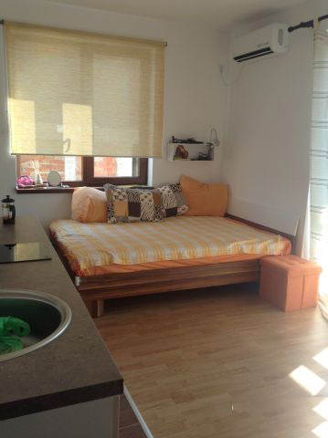 Продается просторная меблированная студия в новой части города Несебр – ж.к. „Черное море”. Студия расположена в новом здании на 3-ем этаже, всего в 300 метрах от моря. Она имеет общую площадь 36 кв.м и состоит из большой комнаты с кухонным уголком, ванной комнаты, прихожей и балкона. Студия исключительно тихая и полностью обставленная – включая бытовую технику – кондиционер, холодильник. Здании имеет Акт 16, без годовой таксы за обслуживание. Подходит как для отдыха, так и для постоянного проживания. Без комиссии с покупателя!