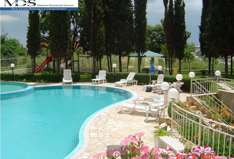 Предлагаем на продажу  двухкомнатную квартиру в апарткомплексе  на курорте « Св.Св. Константин и Елена». Квартира № 9 находится на 1 этаже пятиэтажного кирпичного дома , имеет общую площадь 88.66 м2.  Планировка : большая гостиная с кухонным уголком, спальня, ванная комната с туалетом , балкон. Квартира продаётся полностью обзаведённая мебелью и бытовой техникой . Окна выходят на улицу. В распоряжение собственников предоставляется закрытый двор с красивым дизайнерским озеленением , бассейн, барбекю, в подвальном помещении имеется закрытый бассейн , сауна , стиральное помещение, имеется паркоместо.  Дом находится в 500 метрах от моря , пляжей и знаменитых термальных минеральных источников. Годовая поддержка составляет 10 евро за 1 м2. Подходит как для круглогодичного проживания , так же и для отдыха , есть возможность сдачи квартиры в аренду в ваше отсутствие. Рядом находятся магазины , супермаркеты 24 часа , множество кафе и ресторанов. Курорт «Св.Св. Константин и Елена» расположен в 10 км . от центра города Варны и в 8 км. от курорта « Золотые пески». Один из немногочисленных курортов где сохранен зелёный массив леса. Очень тихий и спокойный курорт , подходящий для проживания и отдыха с детьми , для пожилых людей и для людей которые устав от шума повседневной жизни хотят провести свой отпуск в тишине и покое. Рядом находятся пляжи и море ,а так же 2 платных бассейна с минеральными термальными источниками (один 5 евро , другой 2.5 евро ) за целый день и один бесплатный . Вода в них имеет неповторимы состав который лечит , облегчает и предотвращает многие заболевания опорно- двигательной системы, успокаивает нервную систему и др.  Температура в них держится около 38 градусов, вода пригодна для питья. Поэтому принимать ванны с данной водой можно круглогодично.