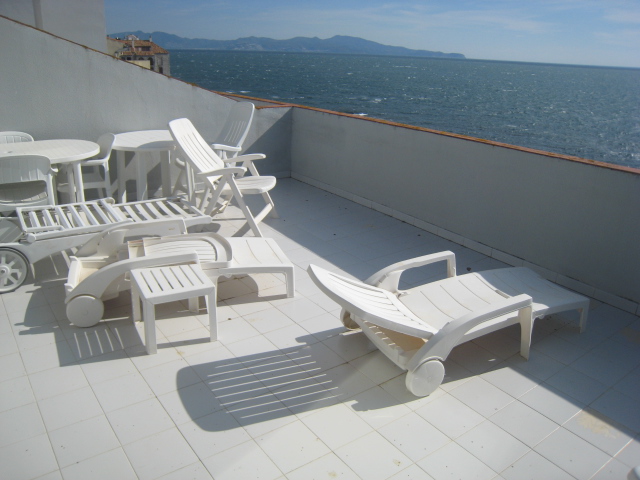 L'Escala - Penthouse-Duplex in prime seafront location with panoramic views and in the heart of town. The ground floor consists of: entrance, living room, kitchen, 3 bedrooms , 2 bathrooms and terrace. The upper floor has: A large room convertible (a large suite or in a great studio with 2 huge terraces with fantastic sea views ) .Also has parking space and storage room in the basement.