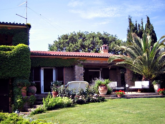 Villa located in Porto Santo Stefano, Via del Pianone Alto. About 280 square meters and over 1500 square meters of well maintained garden. Panoramic view towards the sea. Very good quality of the interior. It's devided in entrance, double living room, one with fireplace, large and comfortable kitchen, four en suite bedrooms. Terracotta floors and sidewalks, beamed ceilings, balconies. Project approved to build a swimming pool.
